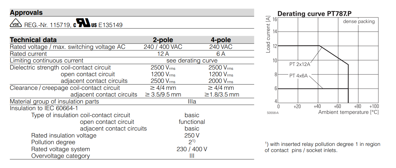 間隙/爬電線圈接觸電路 ≥4/4 mm ≥ 4/4 mm