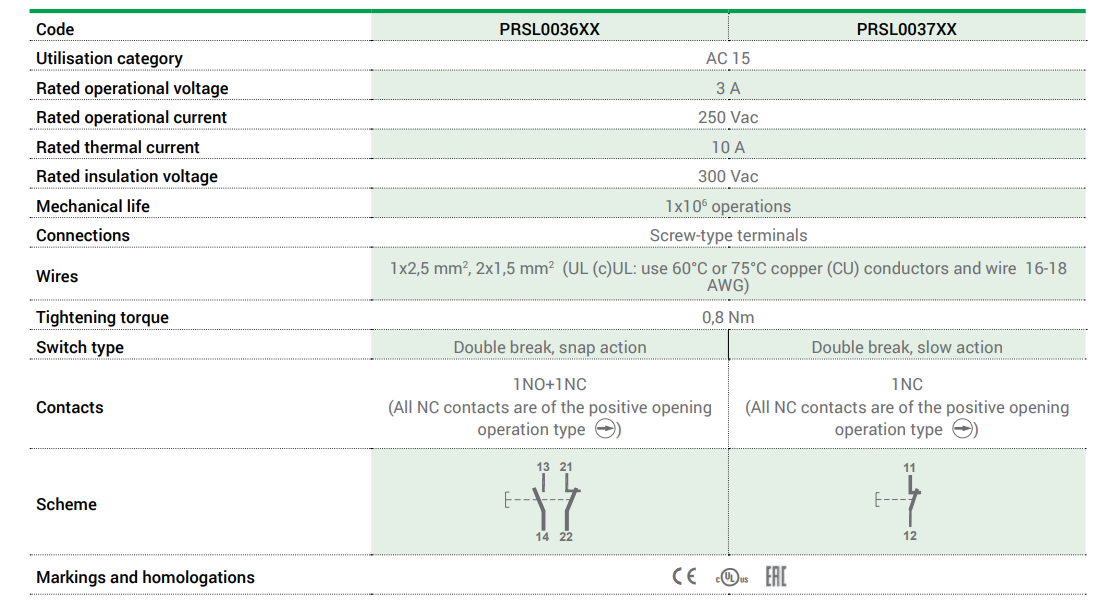 -具有1NO + 1NC觸點(diǎn)的快動開關(guān)或具有1NC觸點(diǎn)的慢動開關(guān)。